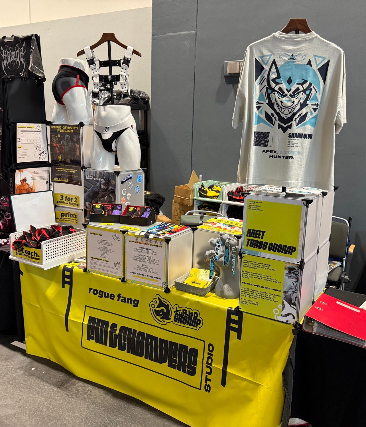Turbo Chomp is our newest addition, mix furries and cars, great quality and cool designs, and you get a brand for petrolheads in the furry fandom. We sell t-shirts, keychains, stickers and more to come!